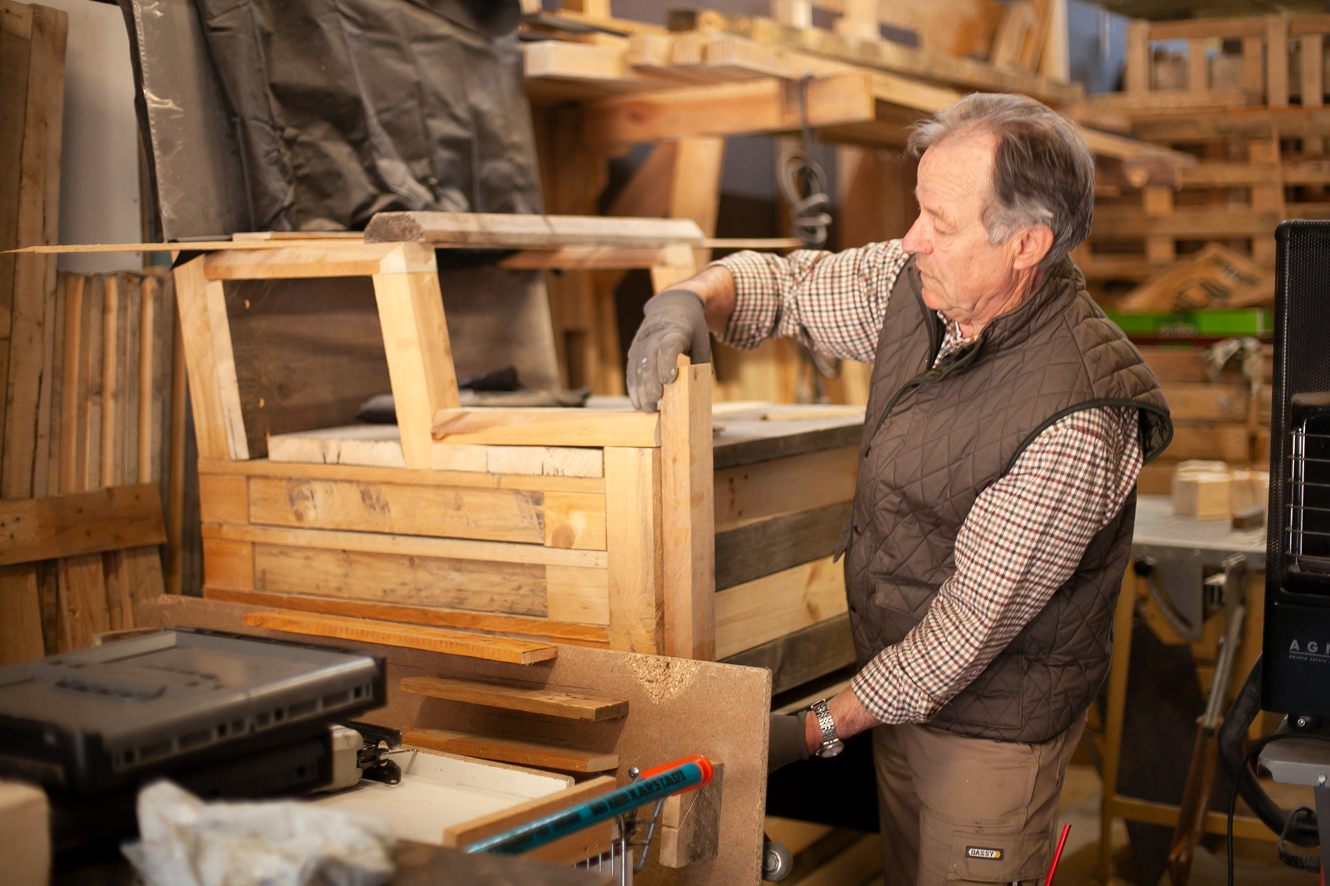 Fotoaufnahmen von Hubert Graßhoff, Palettenkünstler und Holzhandwerker aus Senden