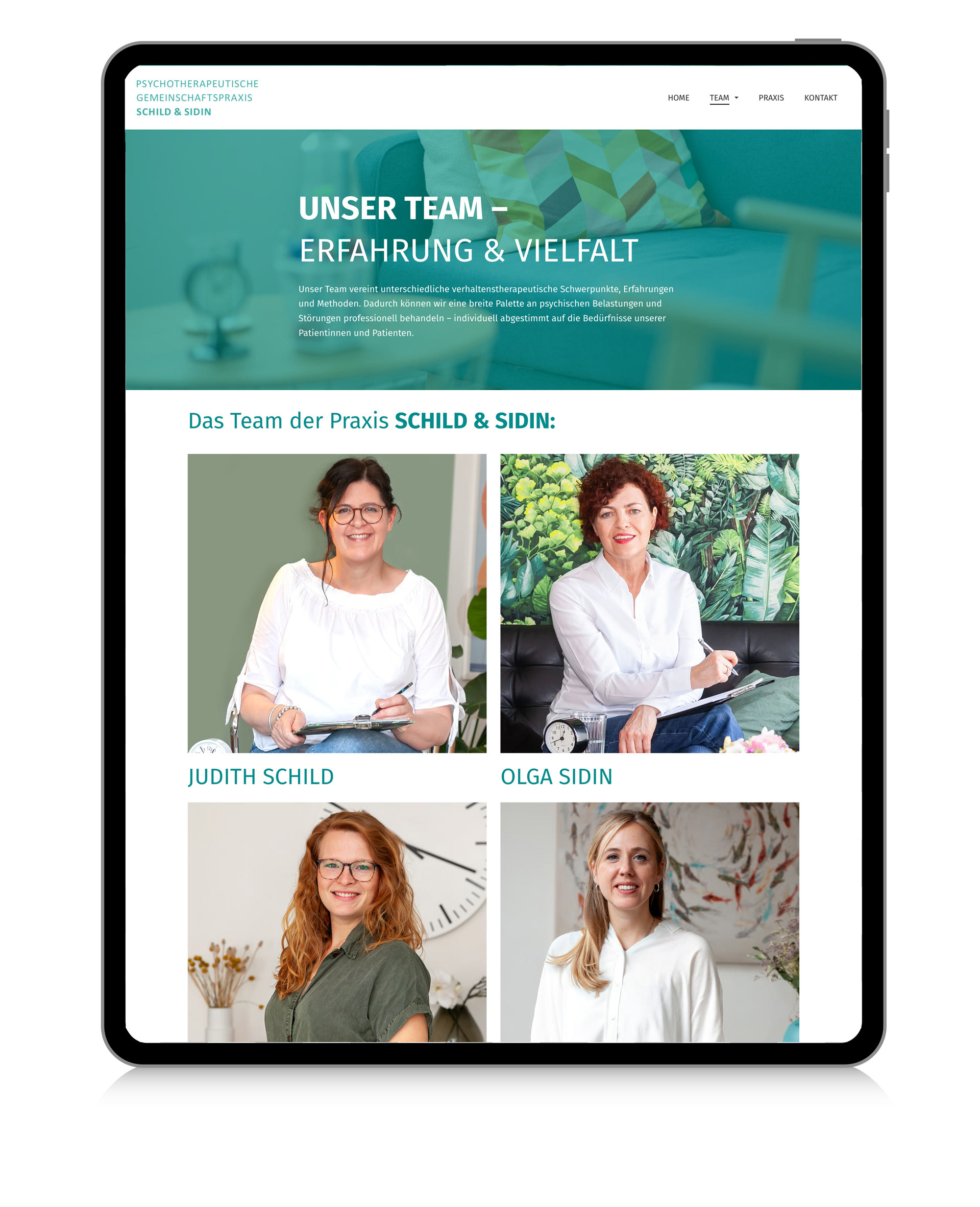 Gestaltung und Umsetzung des Internetauftrittes für die psychotherapeutische Gemeinschaftspraxis von Judith Schild und Olga Sidin, www.schild-sidin.de